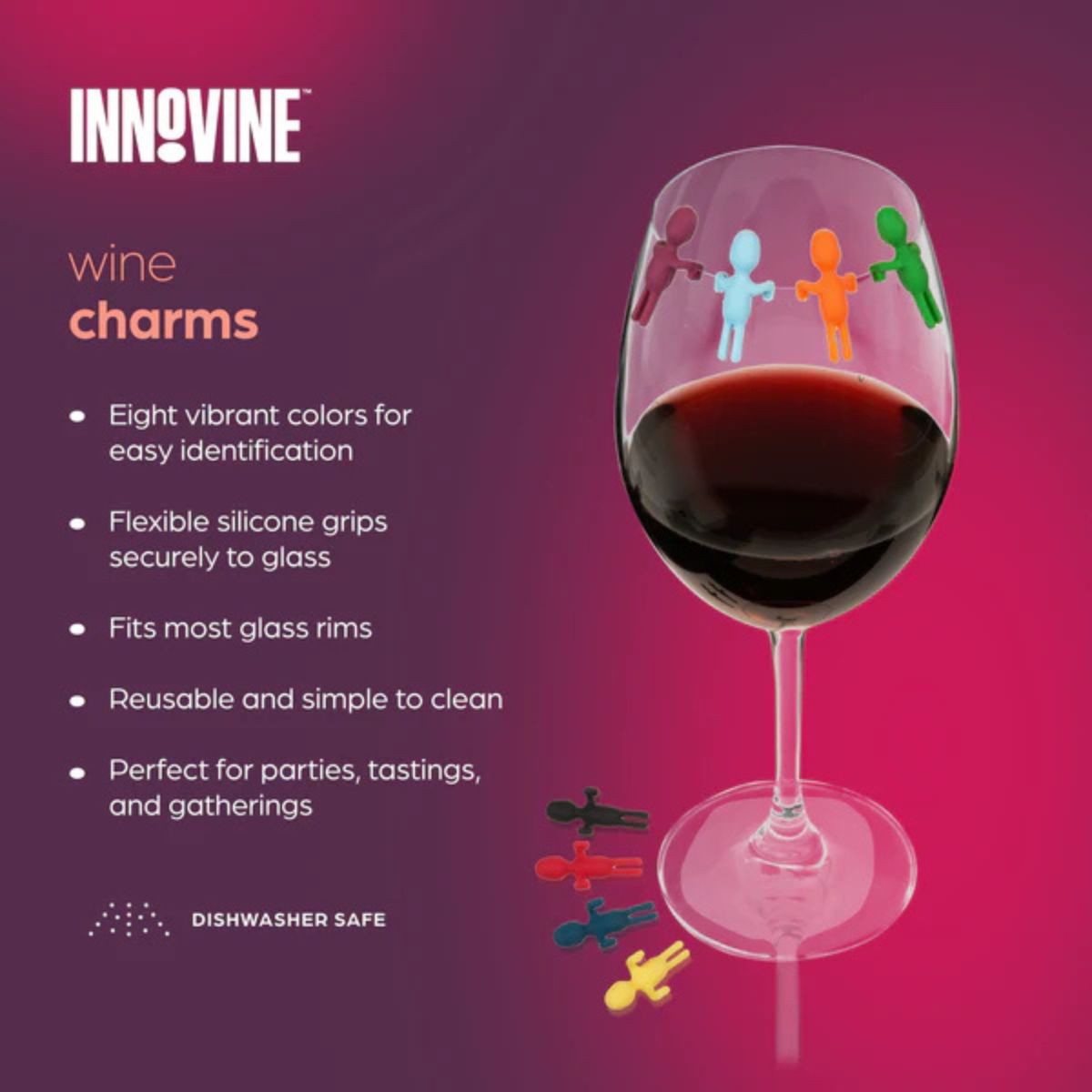 Τέλος στην αμηχανία του ποιο είναι το δικό μου ποτήρι; στα πάρτι και τα τραπέζια. Το σετ Wine Charms της Innovine (κωδ. 12077) περιλαμβάνει 8 πρωτότυπα διακριτικά σε σχήμα "ανθρωπάκια", το καθένα σε διαφορετικό ζωντανό χρώμα, για να αναγνωρίζει ο κάθε καλεσμένος το ποτό του στη στιγμή.