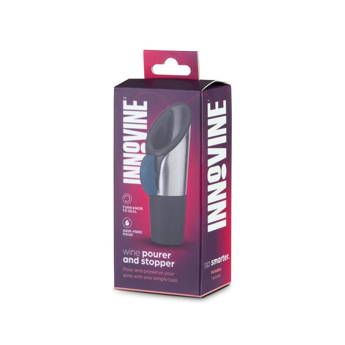 Το Innovine Wine Pourer & Stopper (κωδ. 12004) είναι η έξυπνη λύση για όσους αναζητούν ευκολία και λειτουργικότητα σε ένα μόνο εργαλείο. Αυτό το πολυλειτουργικό αξεσουάρ σας επιτρέπει να σερβίρετε το κρασί σας με ακρίβεια και στη συνέχεια να σφραγίζετε το μπουκάλι αεροστεγώς, διατηρώντας τη φρεσκάδα του για περισσότερο χρόνο.