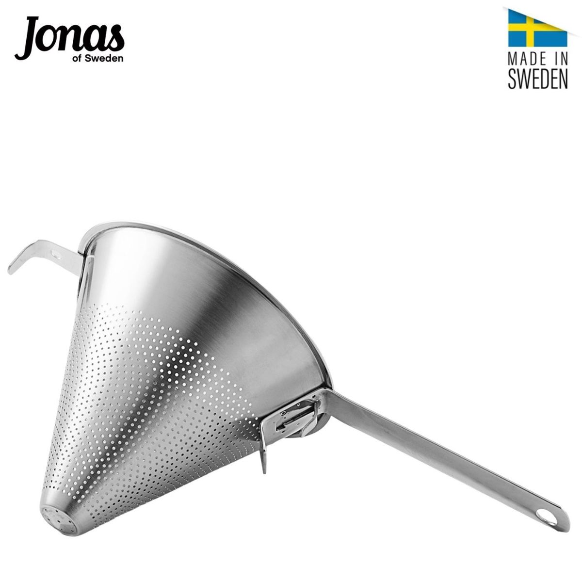 Το ανοξείδωτο σινουά Jonas είναι ένα εξαιρετικά στιβαρό κωνικό σουρωτήρι, ιδανικό για απαιτητική καθημερινή χρήση στην κουζίνα, αλλά και για επαγγελματική χρήση. Κατασκευάζεται στη Σουηδία από ανοξείδωτο ατσάλι 18/10 AISI304, προσφέροντας υψηλή αντοχή, υγιεινή επαφή με τα τρόφιμα και ουδέτερη χρήση χωρίς ξένες γεύσεις ή μυρωδιές.