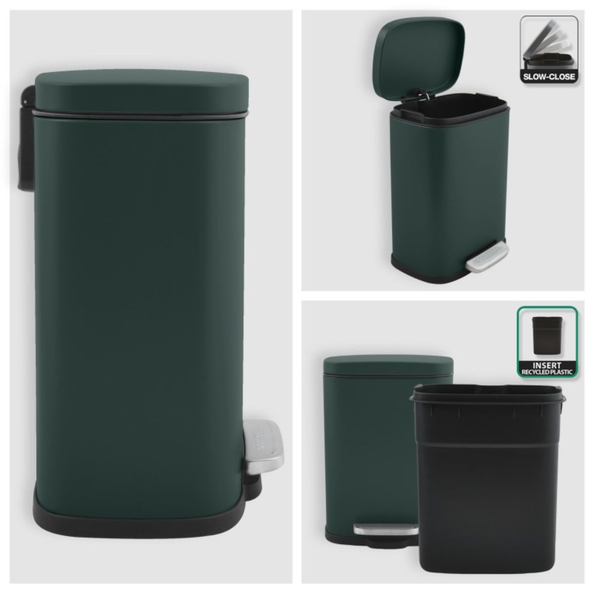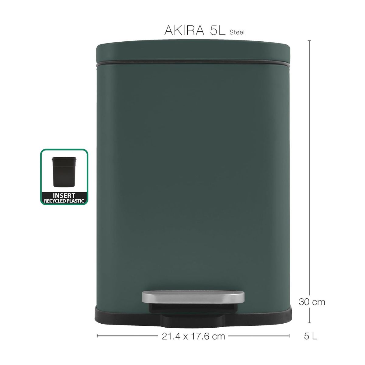Ο κάδος πεντάλ Spirella Akira αποτελεί την ιδανική επιλογή για όσους αναζητούν τον τέλειο συνδυασμό λειτουργικότητας και σύγχρονου design. Με χωρητικότητα 5 λίτρων, είναι ιδανικός για το μπάνιο ή το WC, προσφέροντας μια αίσθηση πολυτέλειας χάρη στο ματ φινίρισμα σε σκούρο πράσινο χρώμα.