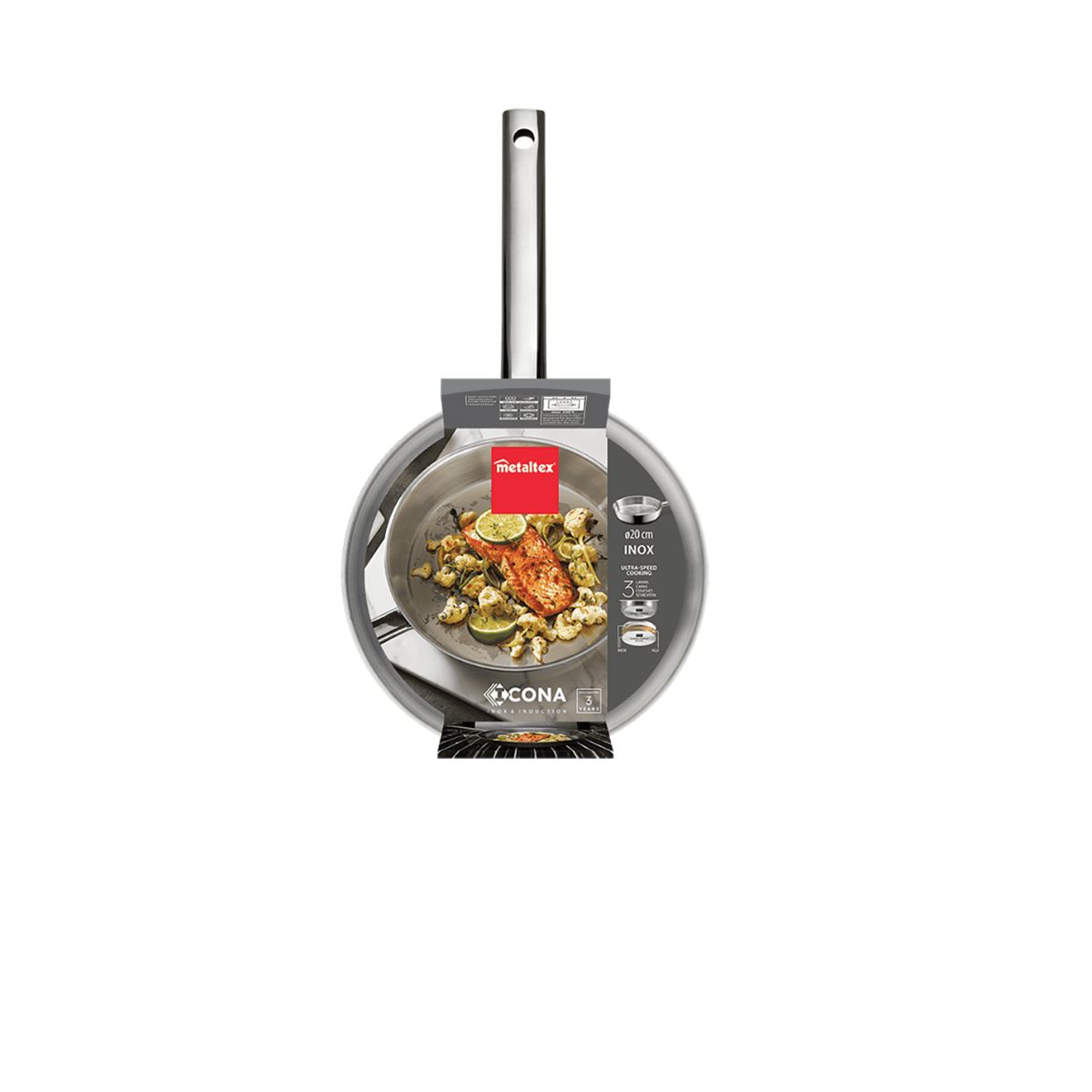 Το τηγάνι της σειράς Icona (20cm) είναι σχεδιασμένο για όσους αναζητούν την ανθεκτικότητα του ανοξείδωτου ατσαλιού στην κουζίνα τους. Χωρίς αντικολλητικές επιστρώσεις που φθείρονται με τον χρόνο, αποτελεί την πιο υγιεινή επιλογή για το καθημερινό σας μαγείρεμα, προσφέροντας παράλληλα την αίσθηση ενός επαγγελματικού σκεύους.