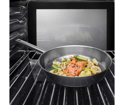 - Από την Εστία στον Φούρνο: Η εργονομική ανοξείδωτη λαβή επιτρέπει τη χρήση του τηγανιού και μέσα στον φούρνο (έως 250°C), ιδανικό για να τελειώσετε το ψήσιμο των φαγητών σας.
