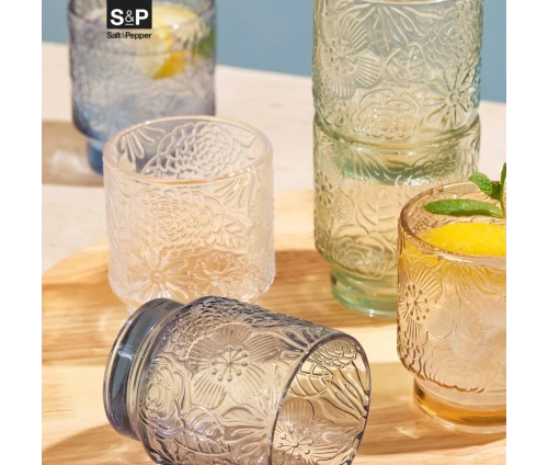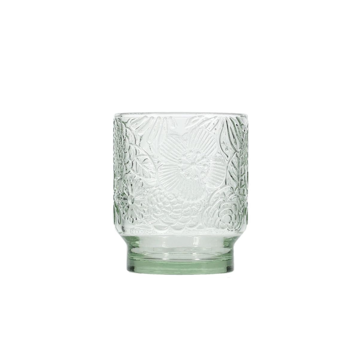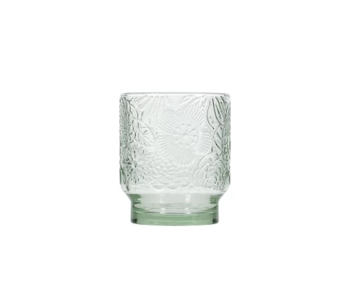 Το σετ 4 ποτηριών Flora (κωδικός: 801322) είναι η ιδανική επιλογή για εσάς που θέλετε να προσθέσετε διακριτικό χρώμα και χαρακτήρα στις καθημερινές ή τις επίσημες στιγμές σας. Η απαλή πράσινη απόχρωση του γυαλιού αναδεικνύει μοναδικά τα ανάγλυφα μοτίβα λουλουδιών, δημιουργώντας ένα παιχνίδισμα με το φως που κλέβει τις εντυπώσεις.