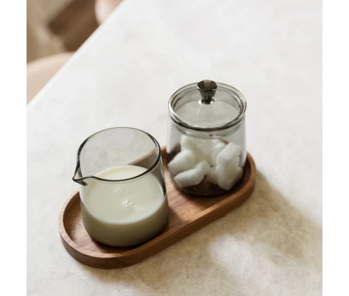 - Οργανικά Υλικά: Η ζαχαριέρα συνοδεύεται από ένα κομψό ξύλινο καπάκι, το οποίο δημιουργεί μια υπέροχη αντίθεση και διατηρεί τη ζάχαρη προστατευμένη.