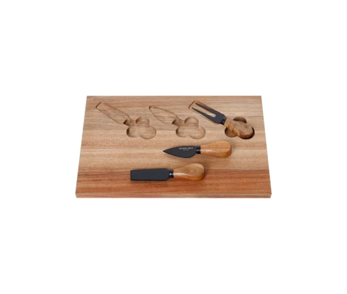- 1 Πλατό Σερβιρίσματος από Ξύλο Ακακίας (33x22 εκ.): Μια στιβαρή και κομψή επιφάνεια με φυσικά νερά ξύλου, ιδανική για την παρουσίαση ποικιλίας τυριών και ορεκτικών.