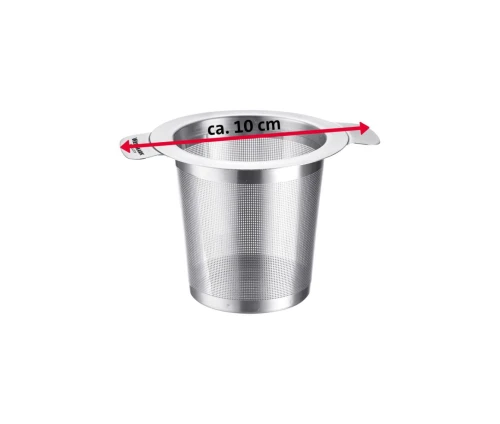 Η πολύ λεπτή σήτα του βοηθά να περνά το άρωμα και η γεύση του τσαγιού χωρίς ανεπιθύμητα υπολείμματα στο ρόφημα. Χάρη στη διάμετρό του, περίπου 10 εκ. μαζί με τα πλαϊνά χερούλια, στηρίζεται άνετα στο χείλος της τσαγιέρας ή του φλιτζανιού για εύκολη τοποθέτηση και αφαίρεση.