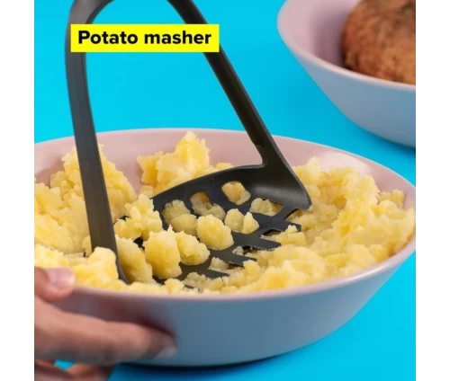 - Διπλή Λειτουργία: Χρησιμοποιήστε την επίπεδη επιφάνεια για να φτιάξετε βελούδινο πουρέ πατάτας ή λαχανικών και τις πλευρικές εγκοπές για να πιάσετε και να σερβίρετε σπαγγέτι με ακρίβεια.