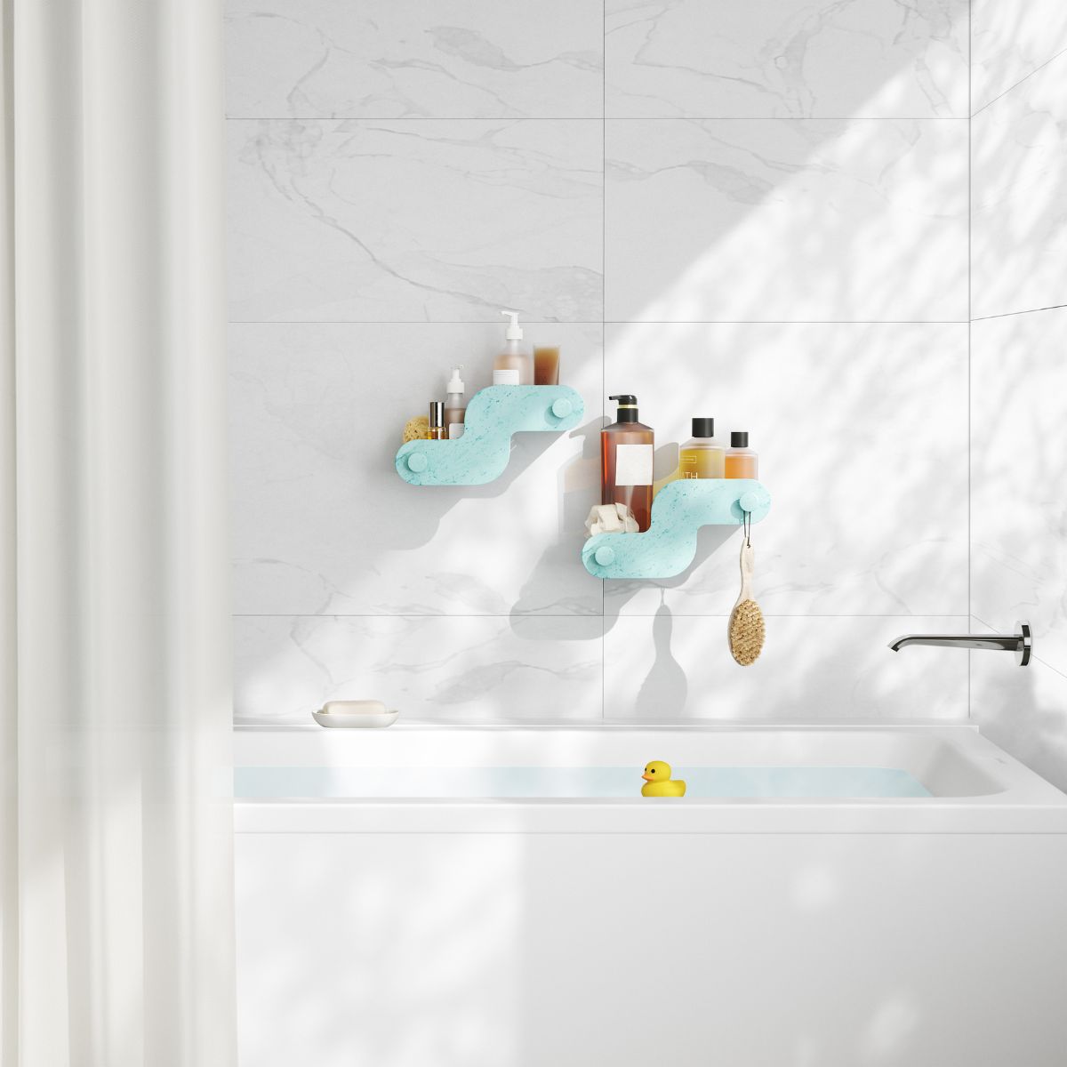 - Σετ 2 Τεμαχίων: Σχεδιασμένες να ταιριάζουν τέλεια στο μπάνιο ή το ντους, προσθέτοντας παιχνιδιάρικο χώρο αποθήκευσης.