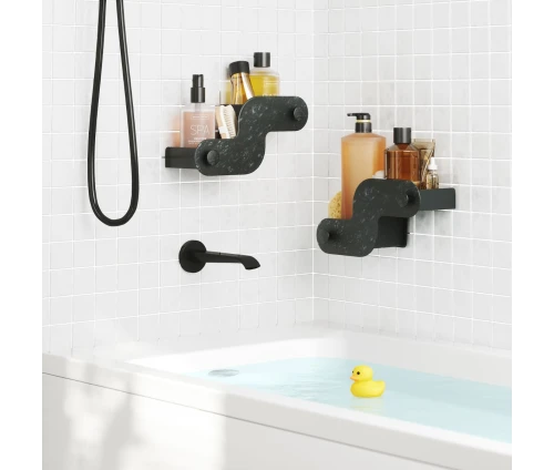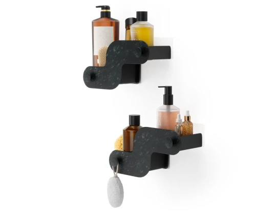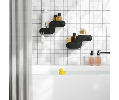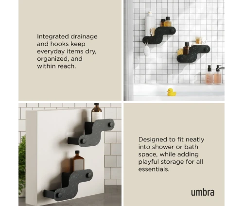 - Έξυπνος Σχεδιασμός: Κάθε θήκη διαθέτει ενσωματωμένες οπές αποστράγγισης για να παραμένουν τα αντικείμενα στεγνά, καθώς και άγκιστρα για κρέμασμα σφουγγαριών ή ξυραφιών.
